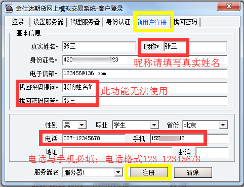 3.输入真实开户信息,点击注册
